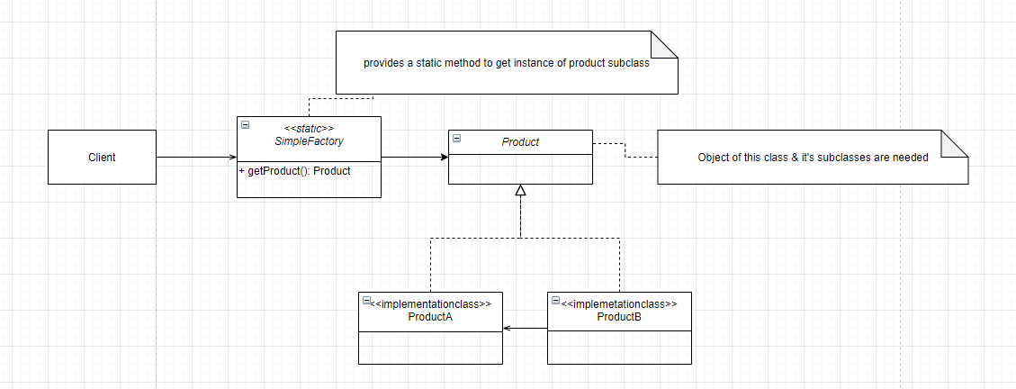 abstract class Post { private Long id; private String title; private String content; private LocalDateTime createdOn; private LocalDateTime publishedOn; public Long getId() { return id; } public void setId(Long id) { this.id = id; } public String getTitle() { return title; } public void setTitle(String title) { this.title = title; } public String getContent() { return content; } public void setContent(String content) { this.content = content; } public LocalDateTime getCreatedOn() { return createdOn; } public void setCreatedOn(LocalDateTime createdOn) { this.createdOn = createdOn; } public LocalDateTime getPublishedOn() { return publishedOn; } public void setPublishedOn(LocalDateTime publishedOn) { this.publishedOn = publishedOn; } } class NewsPost extends Post { private String headline; private LocalDate newsTime; public String getHeadline() { return headline; } public void setHeadline(String headline) { this.headline = headline; } public LocalDate getNewsTime() { return newsTime; } public void setNewsTime(LocalDate newsTime) { this.newsTime = newsTime; } } class BlogPost extends Post { private String author; private String[] tags; public String getAuthor() { return author; } public void setAuthor(String author) { this.author = author; } public String[] getTags() { return tags; } public void setTags(String[] tags) { this.tags = tags; } } class ProductPost extends Post { private String imageUrl; private String name; public String getImageUrl() { return imageUrl; } public void setImageUrl(String imageUrl) { this.imageUrl = imageUrl; } public String getName() { return name; } public void setName(String name) { this.name = name; } } class PostFactory { public static Post createPost(String type) { switch (type) { case "blog": return new BlogPost(); case "news": return new NewsPost(); case "product": return new ProductPost(); default: throw new IllegalArgumentException("Post type is unknown"); } } } public class DemoClient { public static void main(String[] args) { Post post = PostFactory.createPost("news"); System.out.println(post); } }4. Reference