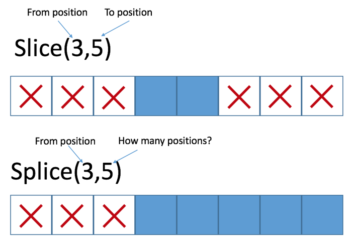 Features Slice Splice Description Will return a new array with a smaller version of the original array. You have to specify the starting and ending index from where you want to cut the array.