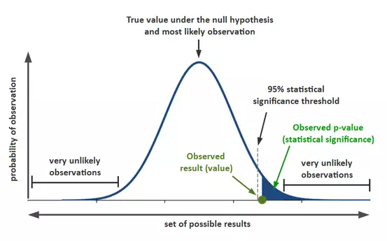 - A p-value of less than 0.05 (typically ≤ 0.05) is statistically significant.
