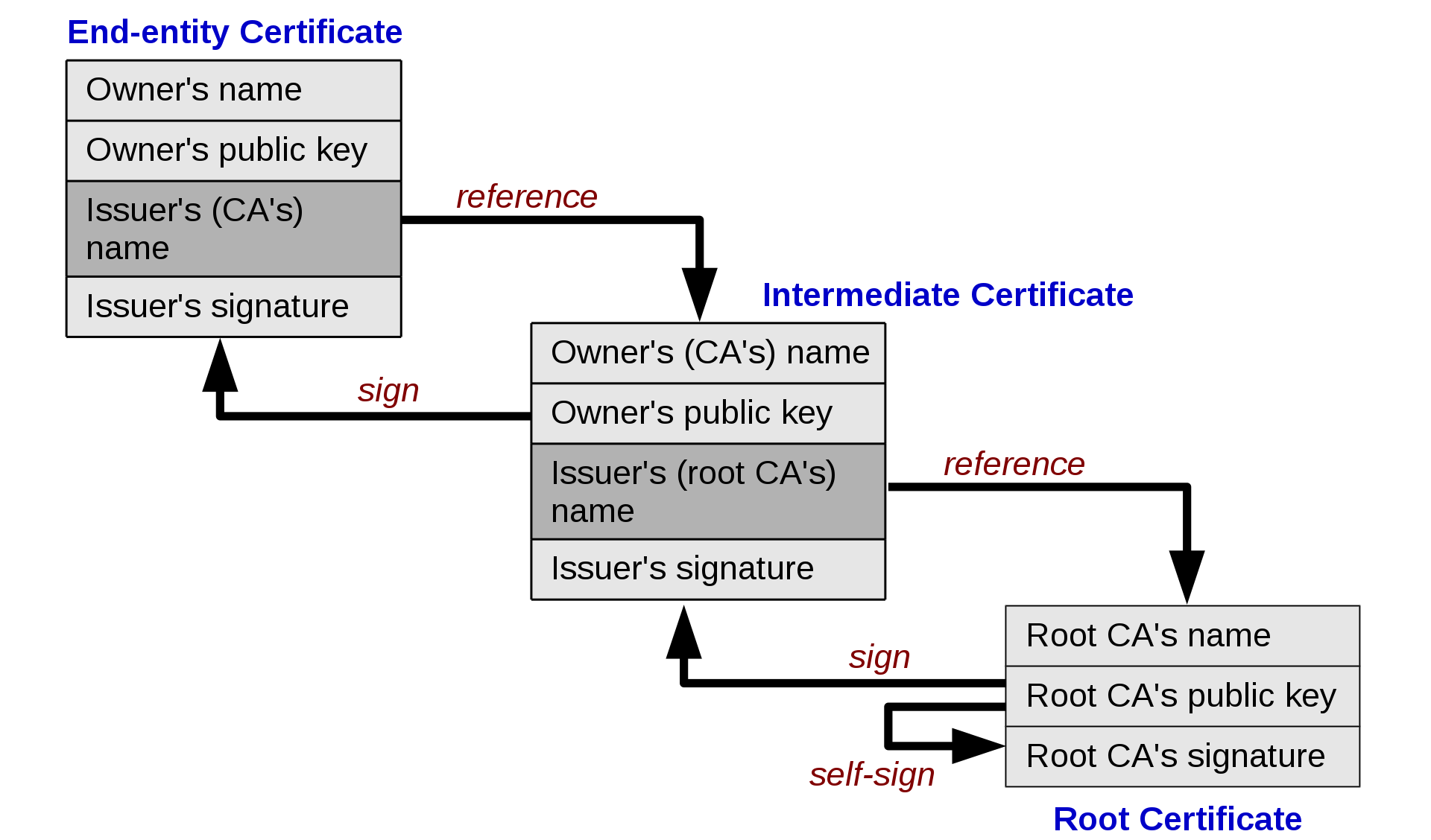 In cryptography and computer security, a root certificate is a public key certificate that identifies a root certificate authority (CA). Root certificates are self-signed (or it is possible for a certificate to have multiple trust paths, say if the certificate was issued by a root that was cross-signed) and form the basis of an X.509-based public key infrastructure (PKI). Either it has matched Authority Key Identifier with Subject Key Identifier, in some cases there is no Authority Key identifier, then Issuer string should match with Subject string (RFC 5280). For instance, the PKIs supporting HTTPS for secure web browsing and electronic signature schemes depend on a set of root certificates.