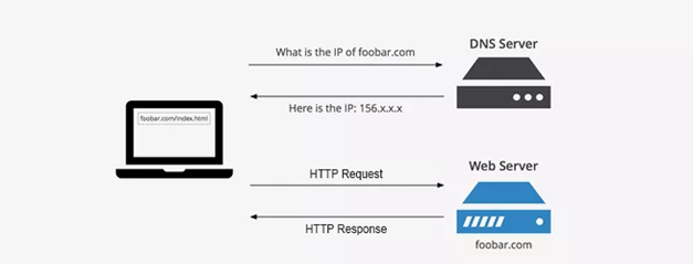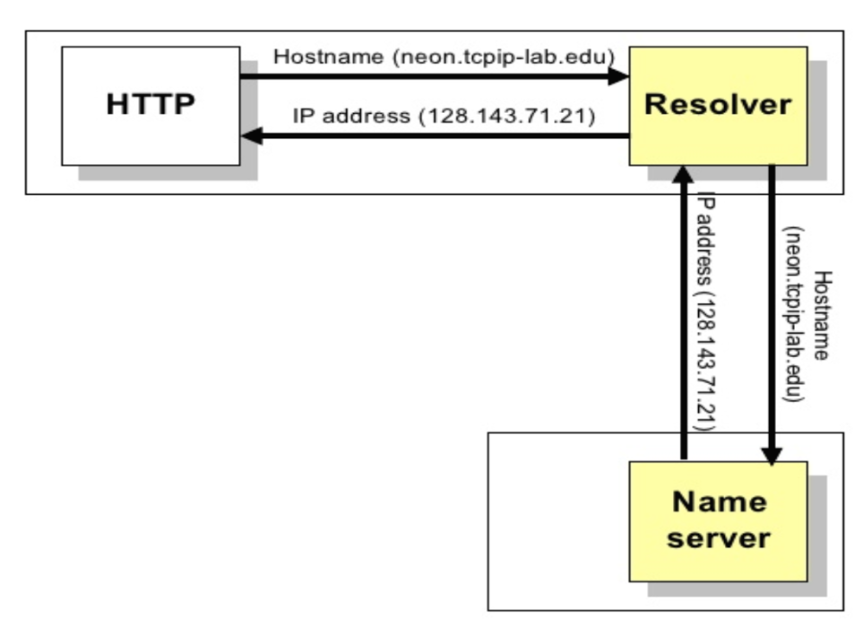 There are two types of queries of Domain name resolution(DNS) to issue a request for the IP address of a hostname. Then local resolver formulates a DNS query to the name server of the host. Name server checks if it is authorized to answer the query. If it is, it responds. Otherwise, it will query other name servers, starting at the root tree. When the name server has the answer it sends it to the resolver.