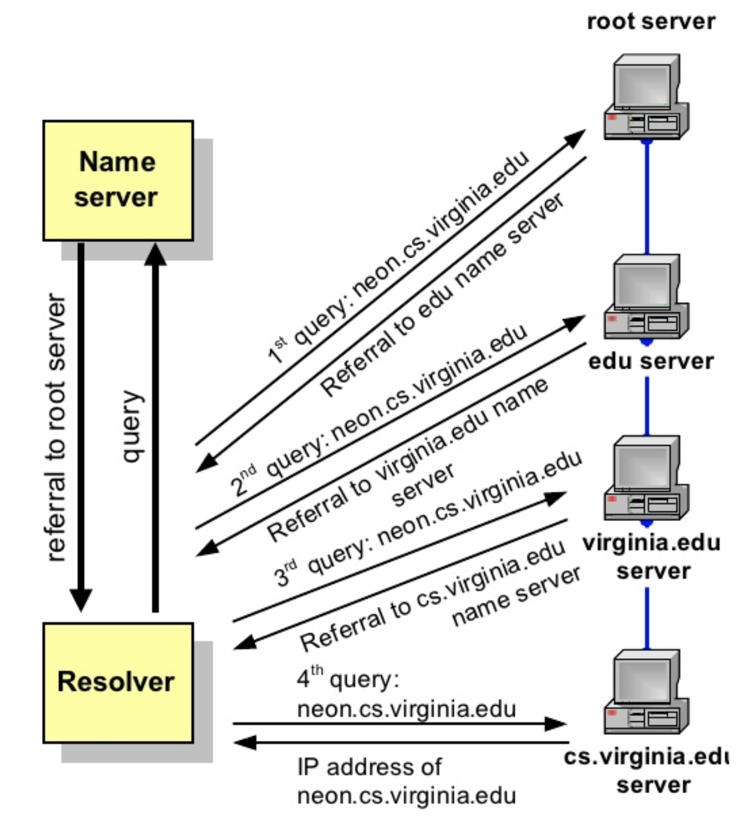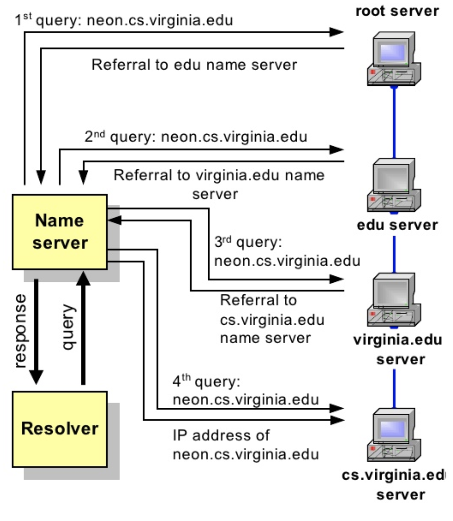 - and so on till find "neon.cs.virginia.edu" which is queried from resolver