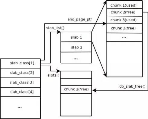 When Memcached receives the data sent from the client, it will first select the most appropriate Slab Class according to the data size, and then query the idle chunk list containing the Slab Class in the Memcached to locate a chunk for storing the data. When a piece of data expires or is obsolete, and therefore discarded, it is possible to recycle the chunk originally occupied by the record and restore it to the idle list.