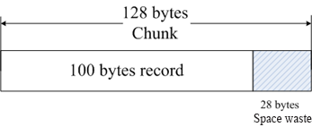 From the above process, we can see that Memcached has very high memory management efficiency that will not cause memory fragments. Its biggest defect, however, is that it may cause space waste. Because the system allocates every chunk in the memory space of a specific length, longer data might fail to utilize the space fully. As shown in the figure, when we cache data of 100 bytes into a chunk of 128 bytes, the unused 28 bytes go to waste.