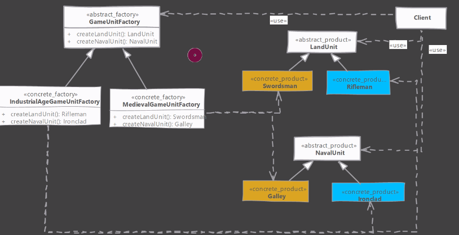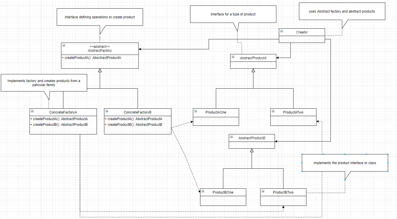 - So we separate client code from concrete objects forming such a set and also from the code which creates these sets.