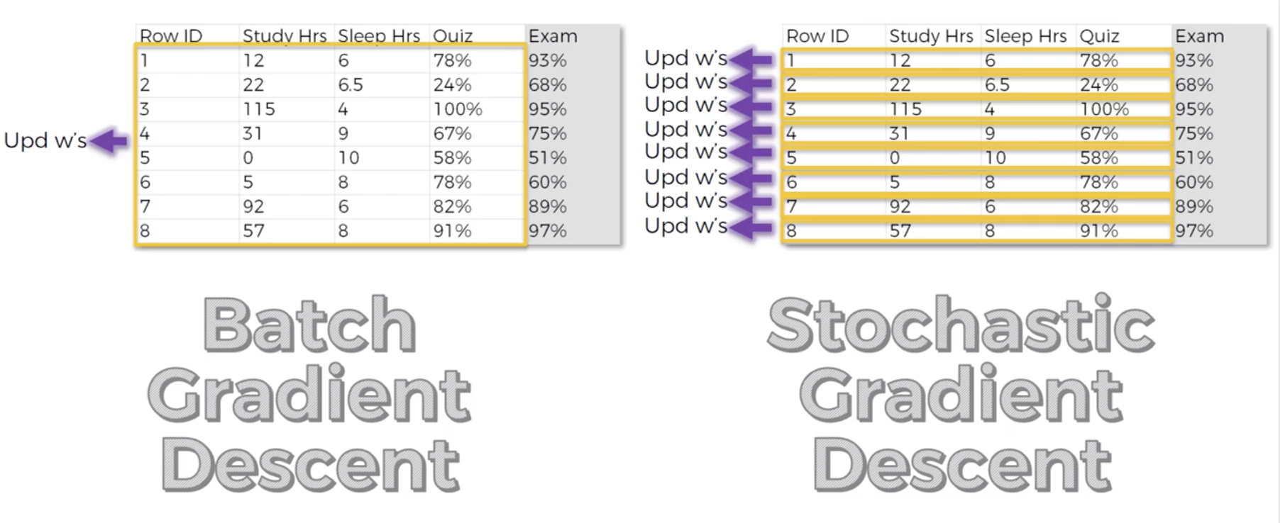 Step 6: Repeat Steps 1 to 5 and update the weights after each observation (Reinforment Learning). Or: Repeat Steps 1 to 5 but update the weights only after a batch of observations (Batch Learning).