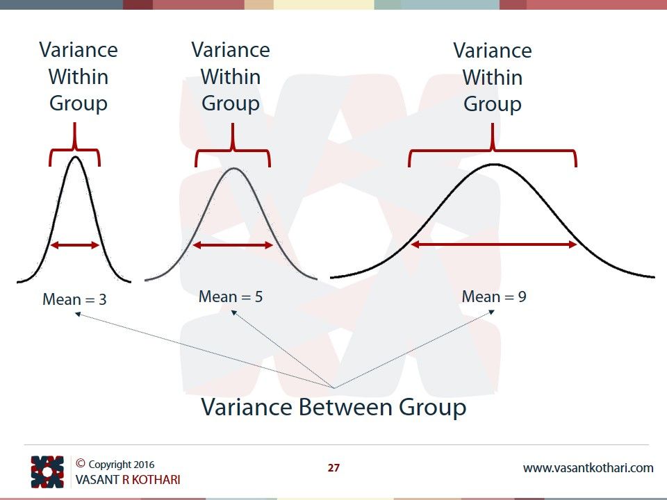 Analysis of variance (ANOVA) is a collection of statistical models and their associated estimation procedures (such as the "variation" among and between groups) used to analyze the differences among group means in a sample. The ANOVA is based on the law of total variance, where the observed variance in a particular variable is partitioned into components attributable to different sources of variation. In its simplest form, ANOVA provides a statistical test of whether two or more population means are equal, and therefore generalizes the t-test beyond two means.
