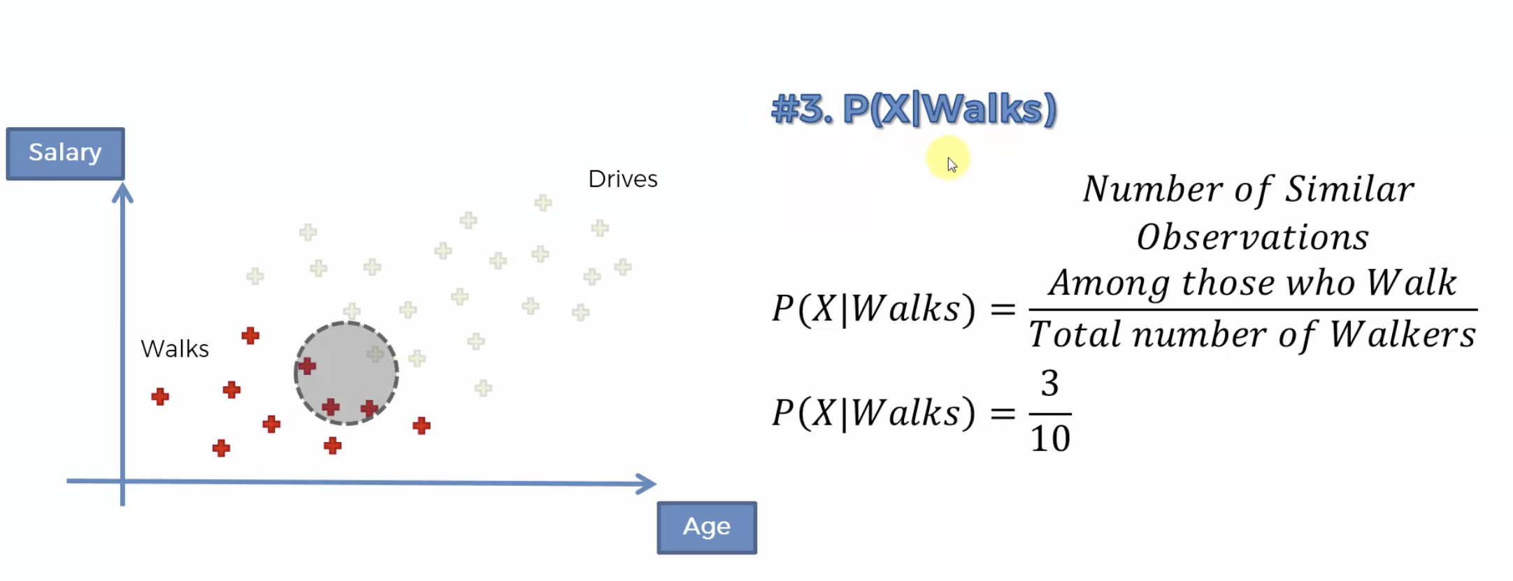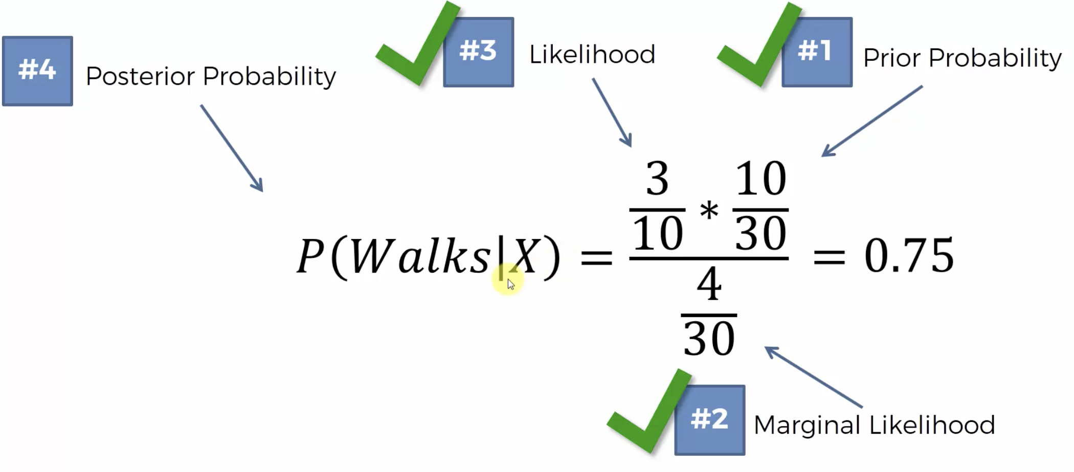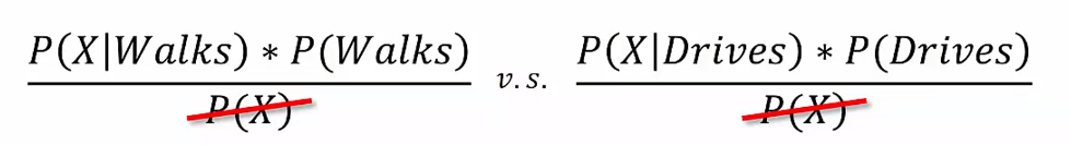 The first time we're going to apply it to find out what is the probability that this person walks given his features and X over here is the features or presents the features of that data point.