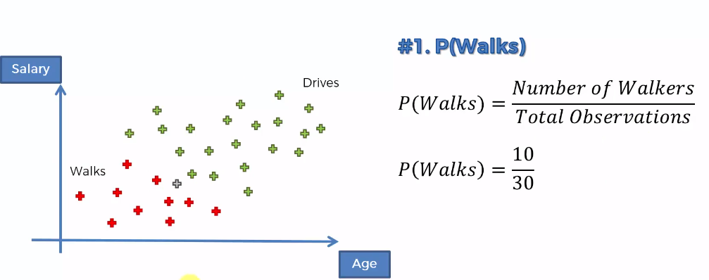 So here we have probably if somebody walks are 10 red dots divide by 30 dots overall.