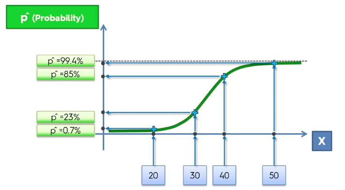 $$p(X)=\frac{e^{\beta_{0}+\beta_{1}x_{1}+\cdots +\beta_{k}x_{k}}}{1+e^{\beta_{0}+\beta_{1}x_{1}+\cdots +\beta_{k}x_{k}}}$$