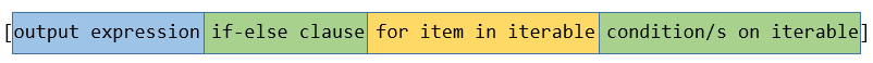 numbers = [1, 2, 3, 4, 5, 6, 18, 20] squares = ["small" if number < 10 else "big" for number in numbers if number % 2 == 0 if number % 3 == 0] print(squares) #output ['small', 'big']3. Comparison between List Comprehensions and loops