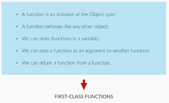 We can pass functions as arguments and return it and store it into variables because functions are always first-class functions in Javascript because they are effectively objects.
