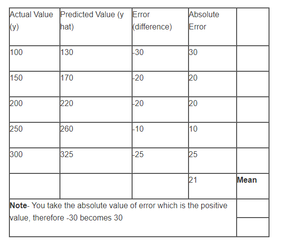MAE is the sum of absolute differences between actual and predicted values. It doesn’t consider the direction, that is, positive or negative. When we consider directions also, that is called Mean Bias Error (MBE), which is a sum of errors(difference).