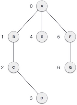 graph = {'A': set(['B', 'C']), 'B': set(['A', 'D', 'E']), 'C': set(['A', 'F']), 'D': set(['B']), 'E': set(['B', 'F']), 'F': set(['C', 'E'])}- Pros:
