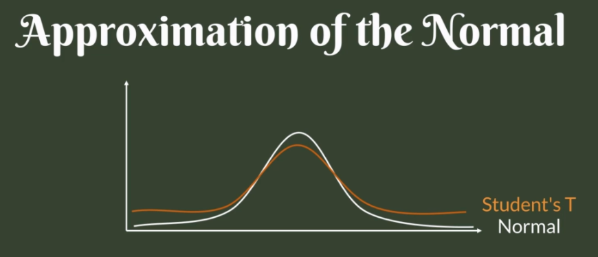 Visually the Student's t distribution looks much like a normal distribution but generally has fatter tails. fatter tails allow for a higher dispersion of variables and there is more uncertainty. It is a small sample size approximation of a normal distribution. We use the Student's t distribution When it doesn't have sufficient data. Student's t distribution is frequently used when conducting statistical analysis. It plays a major role when we want to do hypothesis testing with limited data since we also have a table summarizing the most important values of its CTF which is T-table