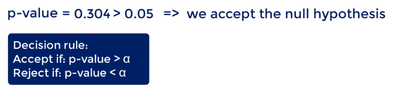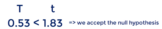 - Rule of thumb: Reject the null hypothesis when the T-score is bigger than 2