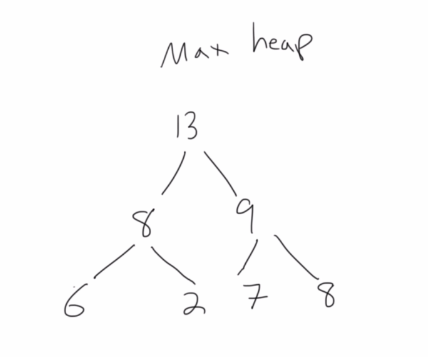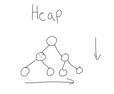 Basically, the idea is that the heap gets filled from the top to the bottom of the fill the top node first and then you build the left child and then you build the right child and then the next note if you want to add it to this heap you basically put it to the left and then to the right and then you put the love child and then the right child. So basically you build it on the way down as well as from the left to the right.