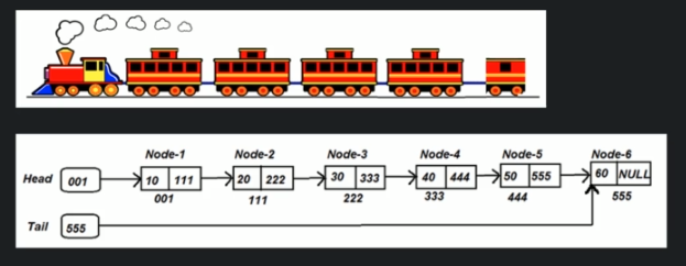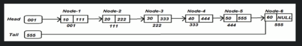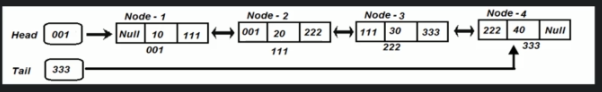 It contains Data and Reference to the next node. In the case of Node-3, it stores data 30 and reference of the next node which address is 333.