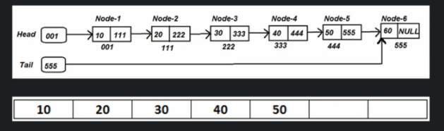 # In case of array array[3]In the case of a linked list, we can not do that. If you want to access an order number 3, we cannot see the linked list. Normally we always have to start from node 1 and keep traversing then we find node 3. And that is one of the biggest limitations of a lined list.