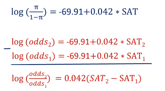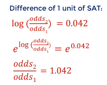 When the SAT score increases by 1, the odds of admittance increase by 4.2%