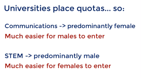 It seems that in this particular university or in this particular degree it is much easier for females to enter.