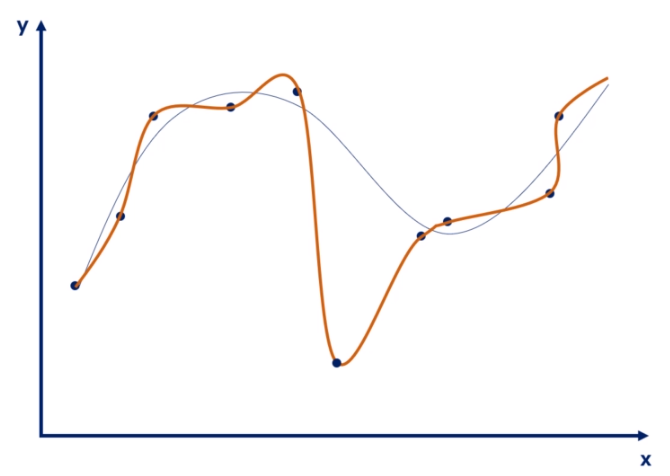 Overfitting refers to models that are so super good at modeling the data that they fit or at least come very near each observation. The problem is that the random noise is captured inside an overfit model.