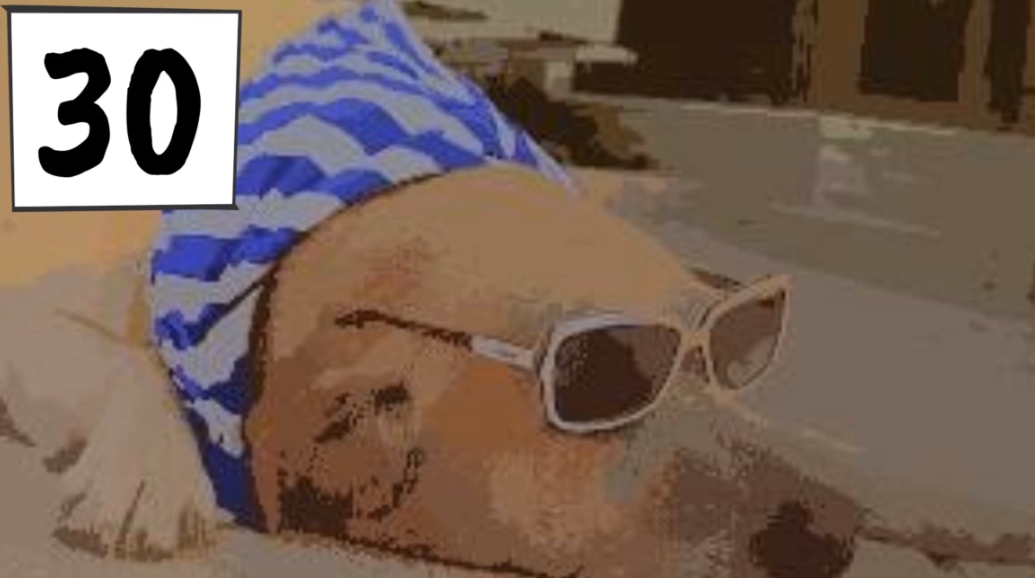 We have 10 clusters, so 10 colors. There was already enough detail to see that it is actually a dog laying on the ground. Moreover, the color of the bandana formed a big enough cluster to actually preserve its blue color as a separate cluster.