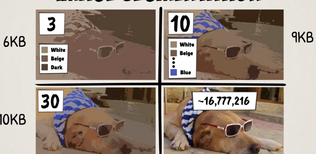 in the R.G. color model, there are 16,777,216 possible colors. So to reproduce a whole image we would need that many clusters and by the way that does not mean that the colors will be perfect.