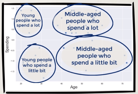 Moreover, most of the data points are middle-aged people who spend a lot. That's most probably who we should aim the marketing at