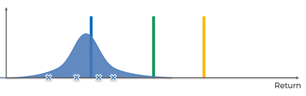 when you get a job description but basically just imagine distribution behind each one of these expected values. So this is just the center of central distribution or the actual expected return from that machine.