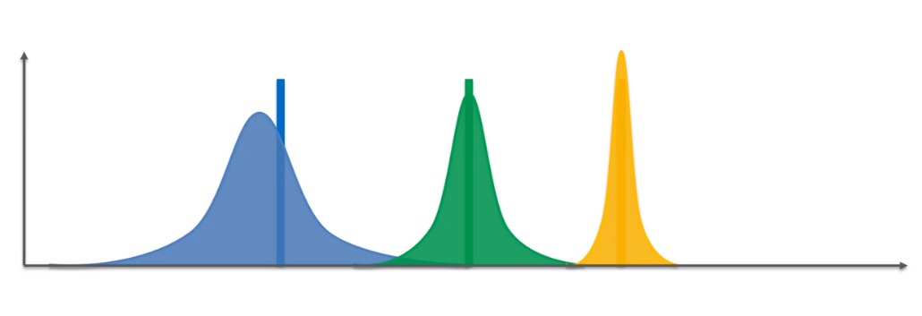the actual meaning of this these distributions is not what you might think at first so these distributions are actually showing us or they're representing not to the degree we're not trying to guess the distributions behind the machine.