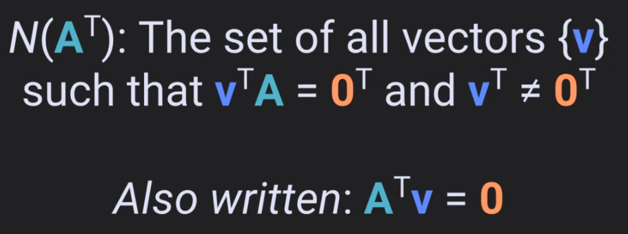 - left null space is actually the regular null space of the matrix transpose.