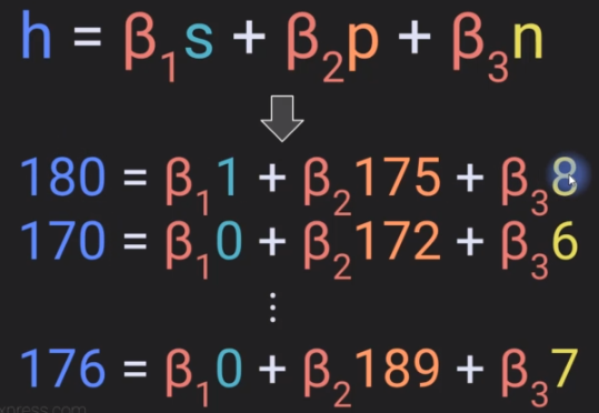 Notice that each of these equations follows the same template just that the numbers are different for each individual. And here this is 1 or 0. This is called dummy coding that's typically done in statistics to deal with binary variables like this.