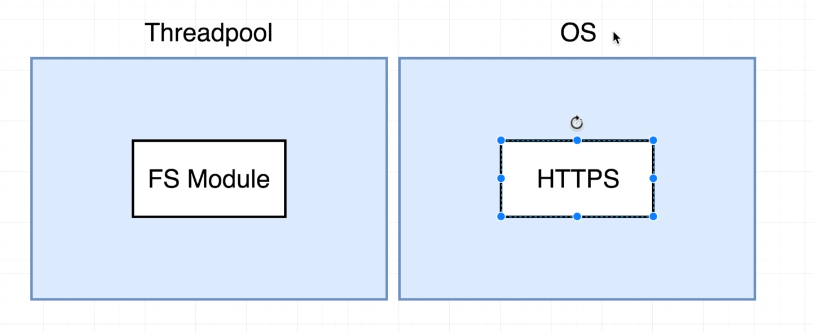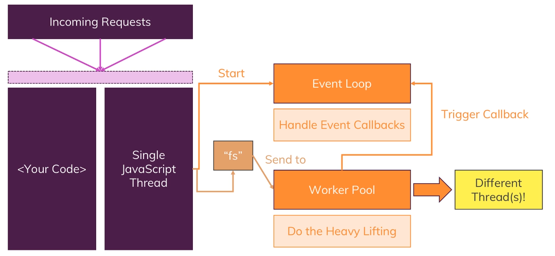 This worker pool is kind of totally detached of your javascript code and it runs on different threads, it can spin up multiple threads, it's closely intervened with your operating system you're running the app on.