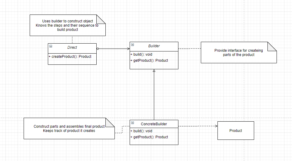 - A director can be a separate class or client can play the role of director
