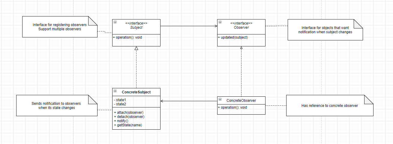 - Subject can be an interface if we are expecting our observers to listen to multiple objects or else subject can be any concrete class