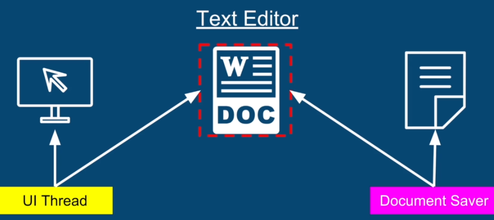 In this case, the benefit from sharing this data structure is that the document saver thread can save the user from losing his or her work if the application crashes or if we lose power.