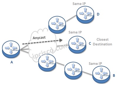 Anycast is the communication that is developed with IPv6. With anycast, the traffic is received by the nearest receiver in a group of the receivers that has the same IP.