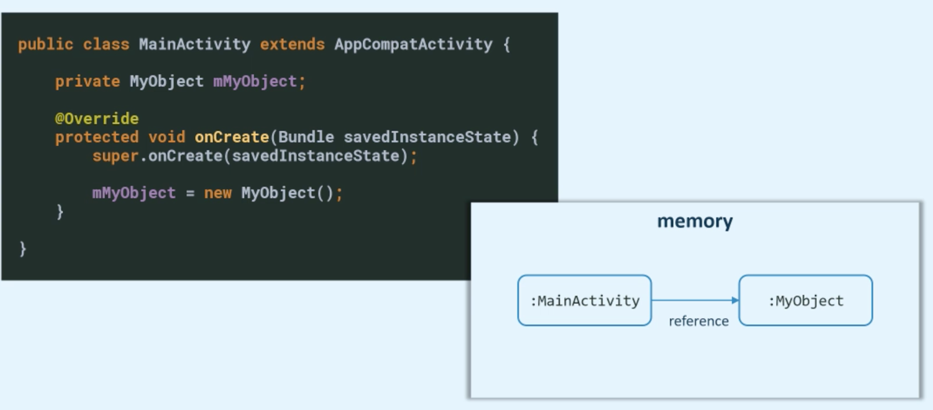 One of the most common sources for memory leaks in Android applications, or at least what used to be one of the most common sources in the past, are static references to activity objects. So basically, people will somehow reference activity from static fields and then those activities will be held in memory forever, even after the system called their own destroy method.