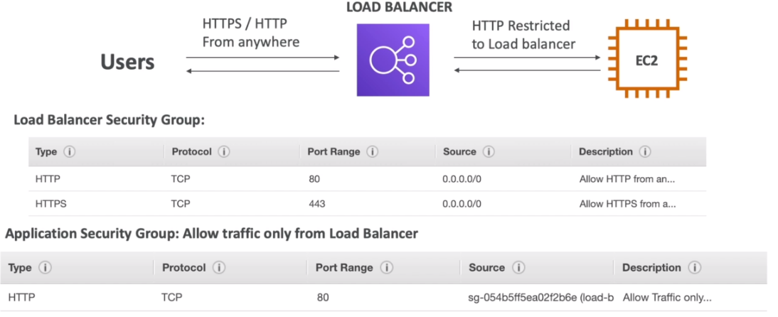 - EC2 instances (can be managed by an Auto Scaling Group) - HTTP