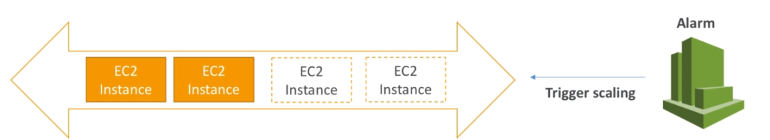 - When a CloudWatch alarm is triggered (example CPU > 70%), then add 2 units
