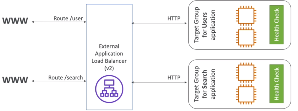 - Load balancing to multiple HTTP applications across machines (target groups)