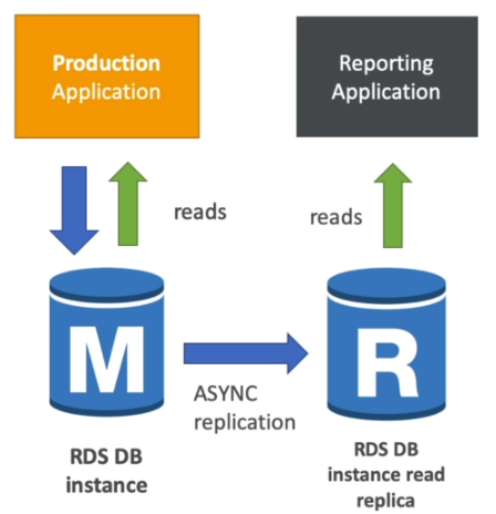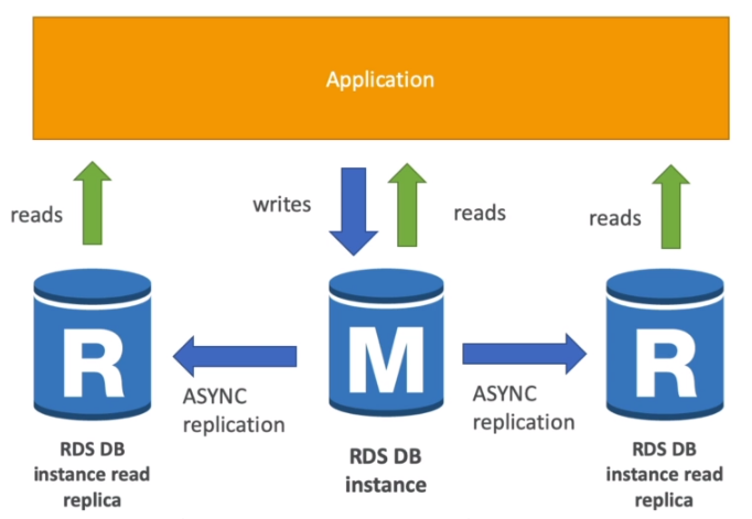 - Read replicas are used for SELECT(=read) the only kind of statements(not INSERT, UPDATE, DELETE)