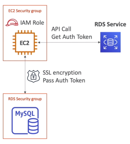 - You don't need a password, just an authentication token obtained through IAM & RDS API calls