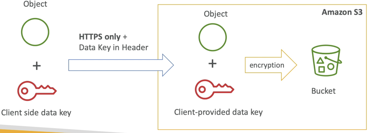 - Encrypt S3 objects using keys handled & managed by AWS.