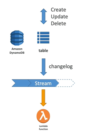- Changes in DynamoDB (Create, Update, Delete) can end up in a DynamoDB Stream)