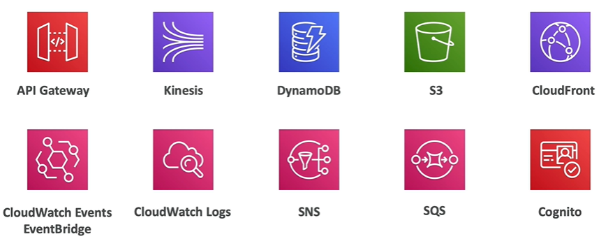 - S3: a Lambda function will be triggered anytime, for example, a file is created in S3