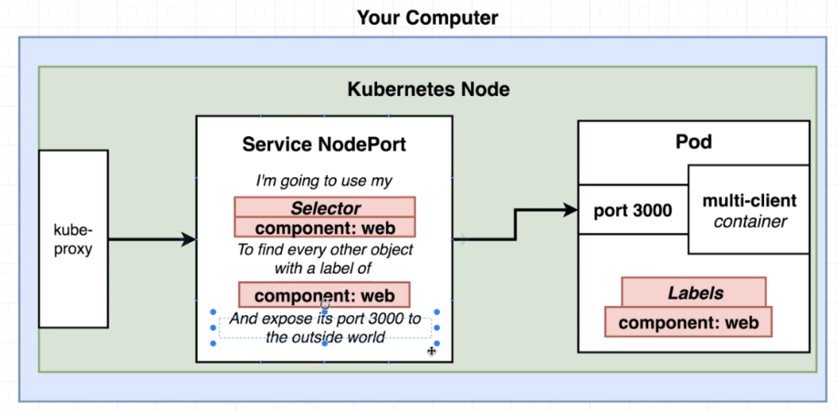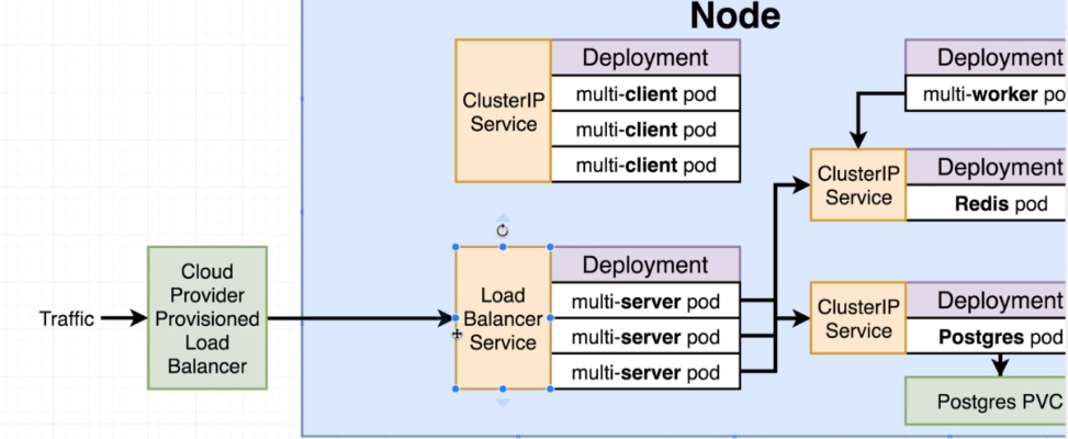 This is a type of service that is going to eventually get some amount of traffic into our application and allow our outside users to access all the different pods that are running containers that they need to get at to actually access out.