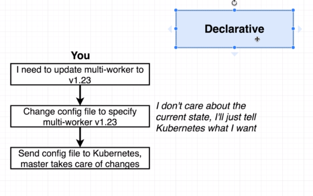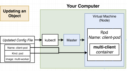 Whenever we make a change to a config file we have to eat it back into the cluster using that same kubectl apply command. Whenever you apply a config file Kubernetes is going to know whether this is a config file has already been fed into it before or if it's something brand new.