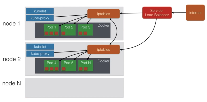 - Load Balancer: Makes a pod accessible from outside the cluster. This is the right way to expose a pod to the outside world